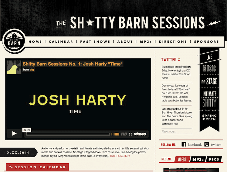 A handful of music-lovers in Spring Green saw the potential in turning a hog barn in rural Wisconsin into a destination — a venue with its own identity, its own reason for existing, and an experience worth making the drive for. Building a brand identity for a music venue from the ground up requires more than a logo. As co-founder, Erin helped shape the concept and character of the space itself, then led the creative visions around it: brand identity, website, merchandise, show marketing, and a screen-printed poster series she designed and printed herself, then curating guest designers for several seasons to follow. Over 350 shows and fifteen years, the Shitty Barn became one of the most beloved intimate music venues in the Midwest — with a visual identity as recognizable as the venue and a cultural footprint that extended well beyond Spring Green.